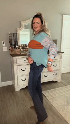 Bring a pop of playful style to your wardrobe with this oversized color block crewneck top! Its relaxed fit and bold, striped accents on the sleeves create a look that’s both laid-back and eye-catching. Perfect for pairing with jeans or layering over leggings, this versatile top is your go-to for casual outings or cozy days in.