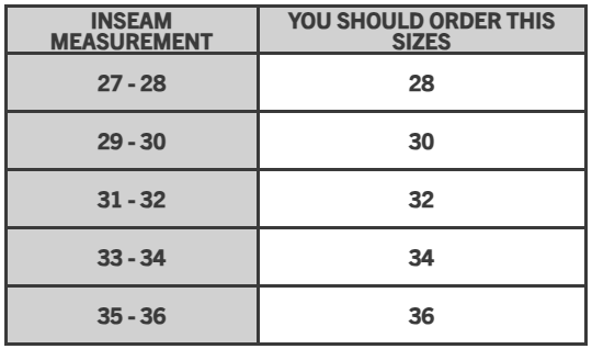 Note:Ā If your inseam length falls between sizes, buy the longer size.