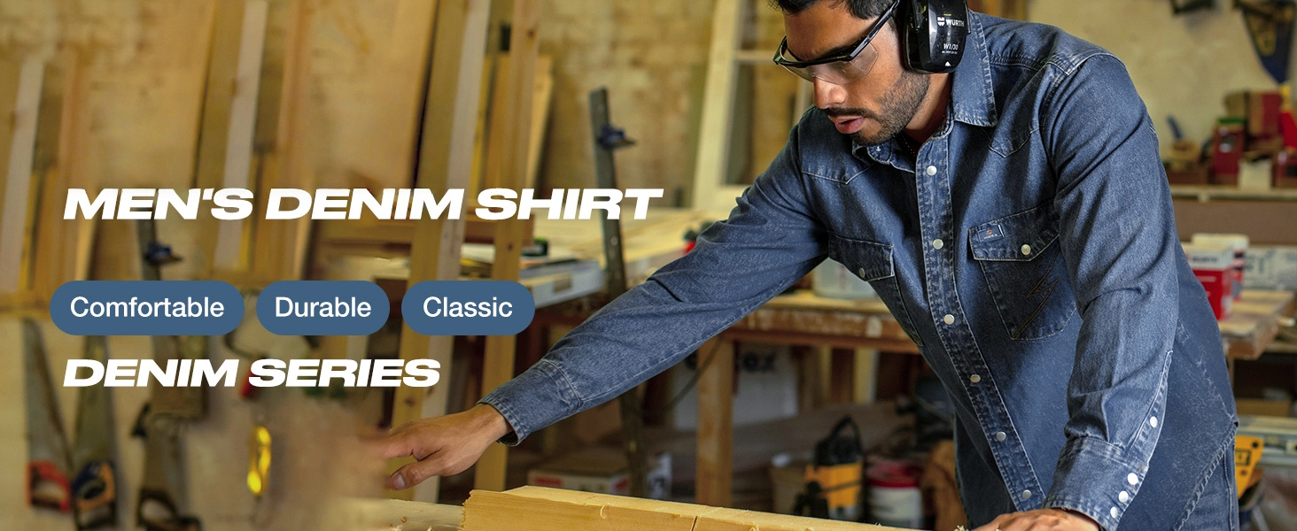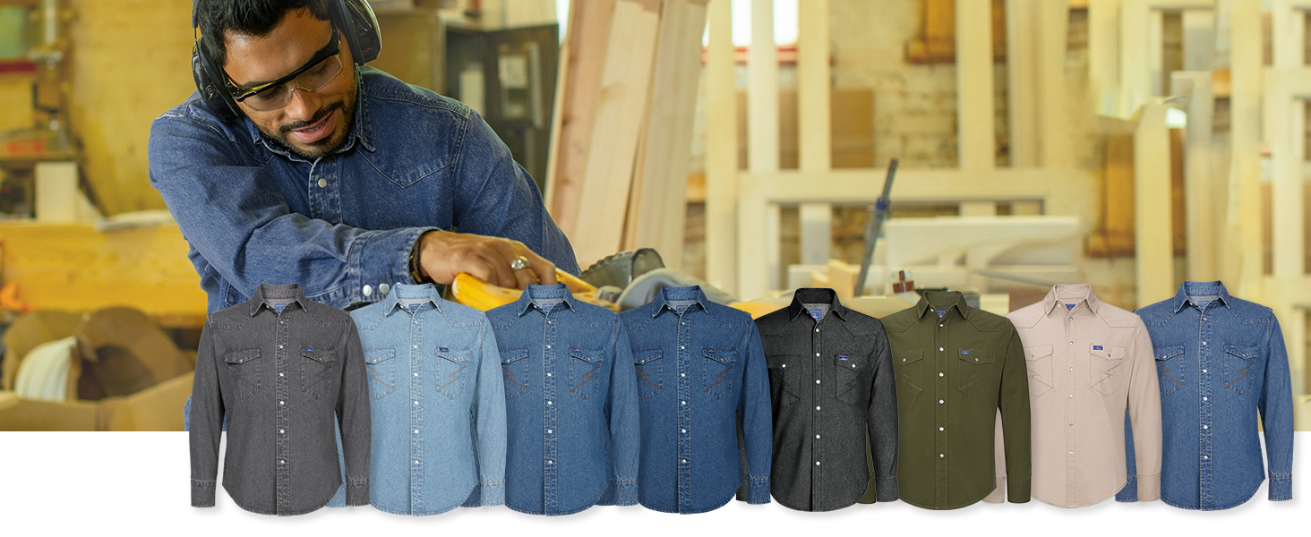 Menā€˜s denim shirts are made of 7.8 oz sturdy machine washable cotton. This fabric is wrinkle-resistant and easy-care. We prewash and preshrunk our shirts so they won't shrink even after multiple washes.