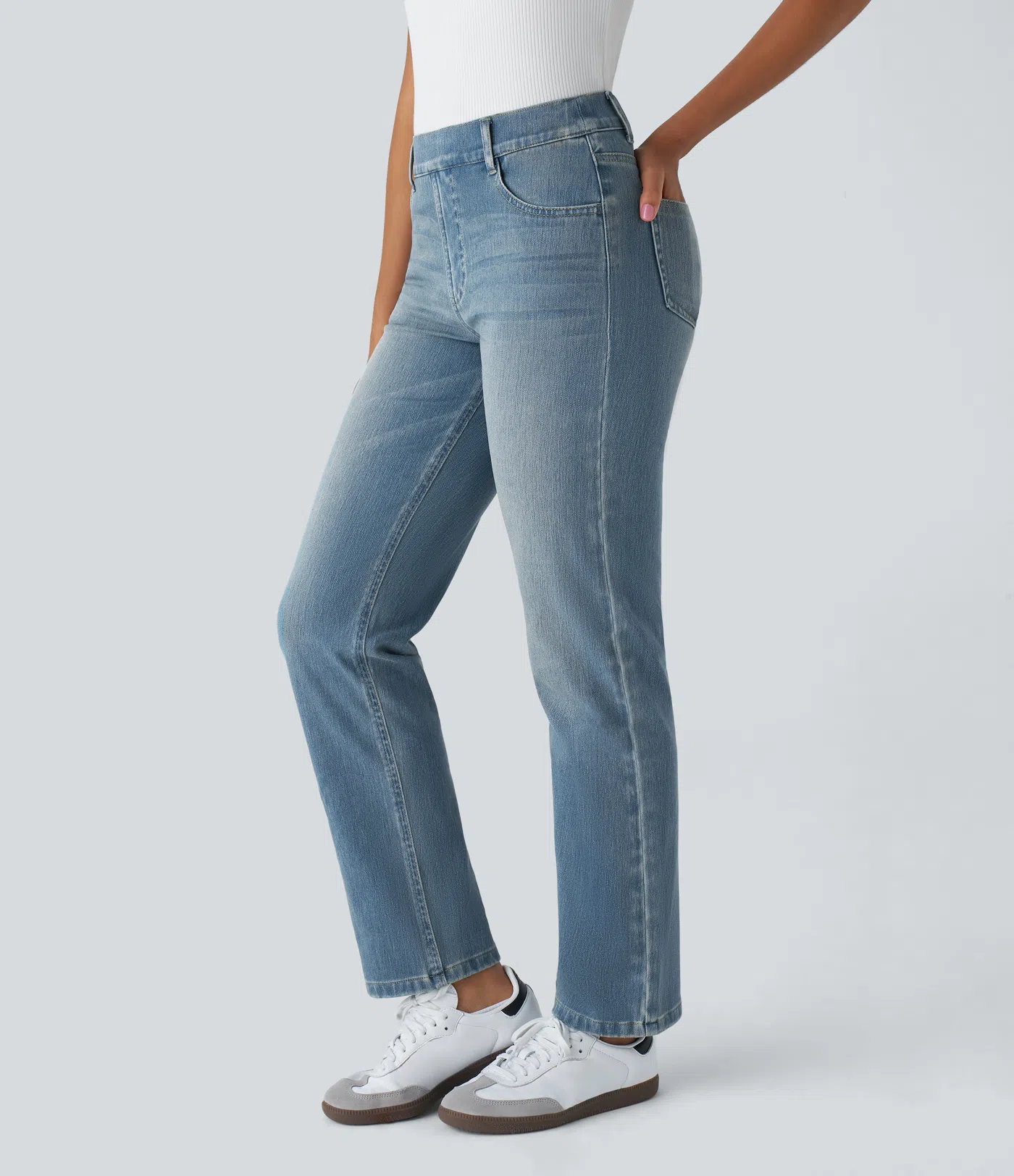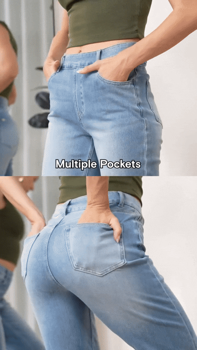 Stretch-Knit Straight-Leg Jeans with Multiple Pockets