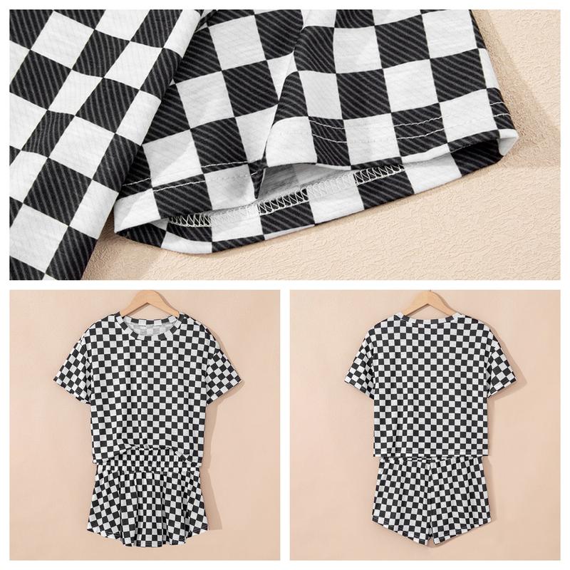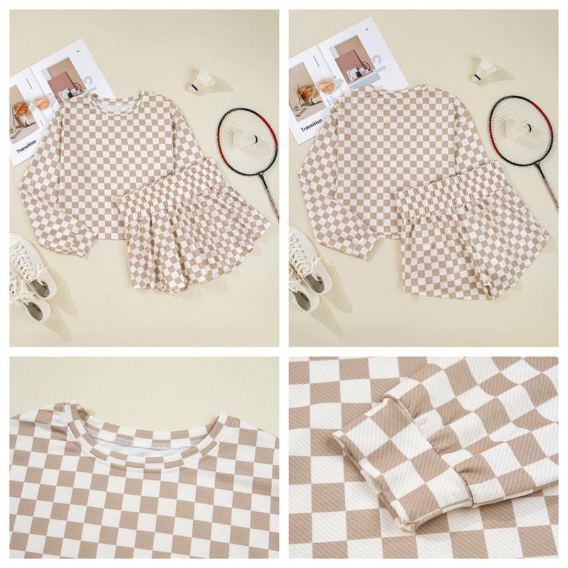 Available in the flattering silhouette, this two-piece skort set comes in both solid color and checkered options to cater to diverse tastes. The smocked waistband effectively smooths the midsection without constriction. The shorts cleverly feature a skirt-like appearance at the front, offering all the style of a skirt with the practicality and coverage of shorts – chic and worry-free!